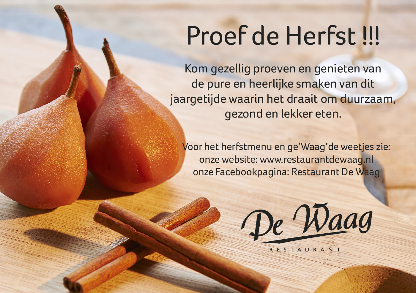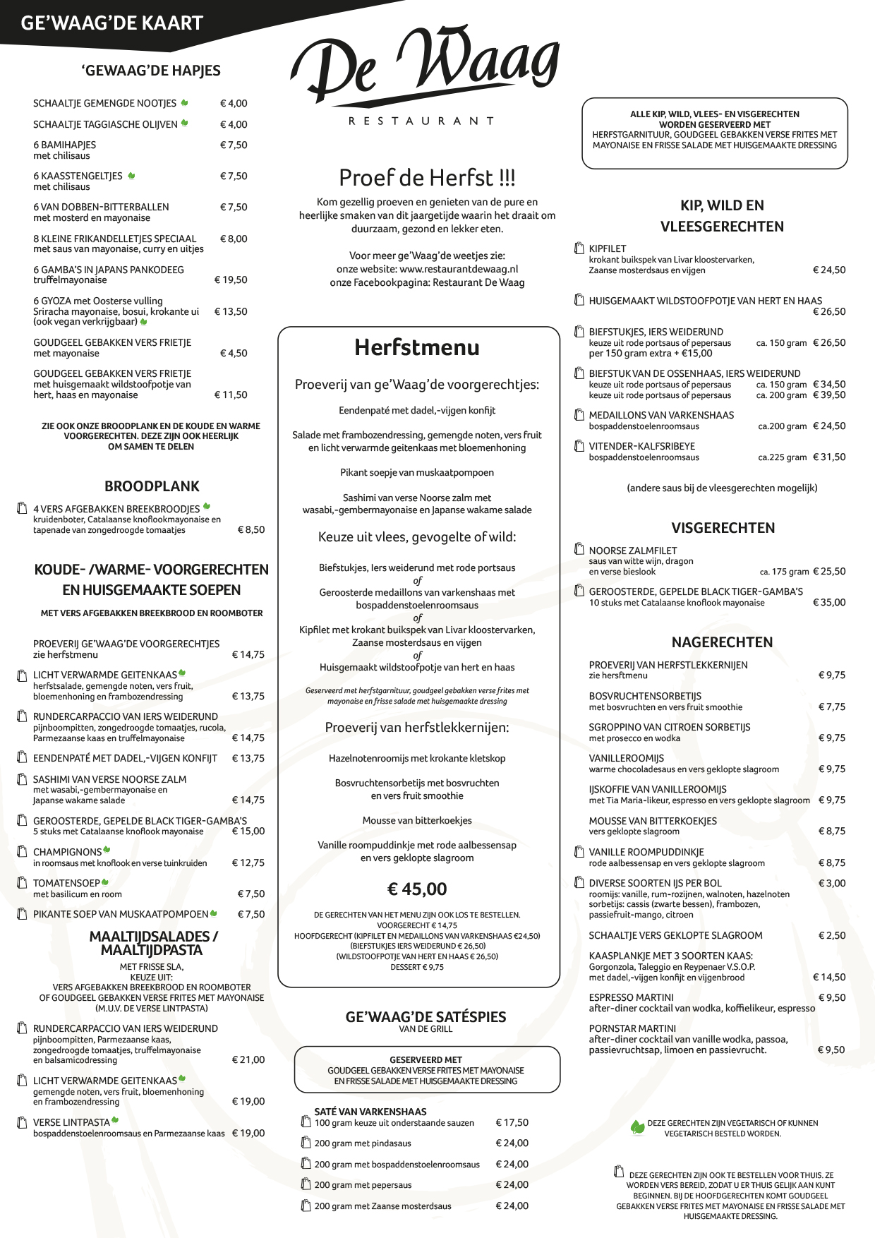 U kunt weer genieten van het herfstmenu en de gerechten van de ge’Waag’de kaart